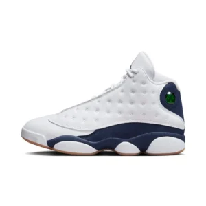 The Air Jordan 13 White Midnight Navy combines a white tumbled leather upper with midnight navy mesh overlays and a black suede midsole for a sleek and modern look. Inspired by Michael Jordan’s agility on the court, it features the signature holographic Jumpman logo on the ankle and Zoom Air cushioning for all-day comfort. A must-have for sneaker lovers in Rwanda, this classic design offers both style and performance.