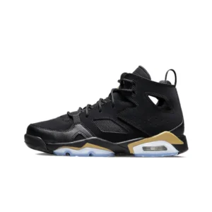 The Air Jordan Flight Club 91 GS Black Metallic Gold blends retro and modern design elements, featuring a black nubuck upper with metallic gold accents for a premium touch. Inspired by the Air Jordan 6, it includes cut-out panels for breathability, a secure lace-up system, and a cushioned midsole for all-day comfort. Perfect for sneaker enthusiasts in Rwanda looking for a stylish yet functional pair.